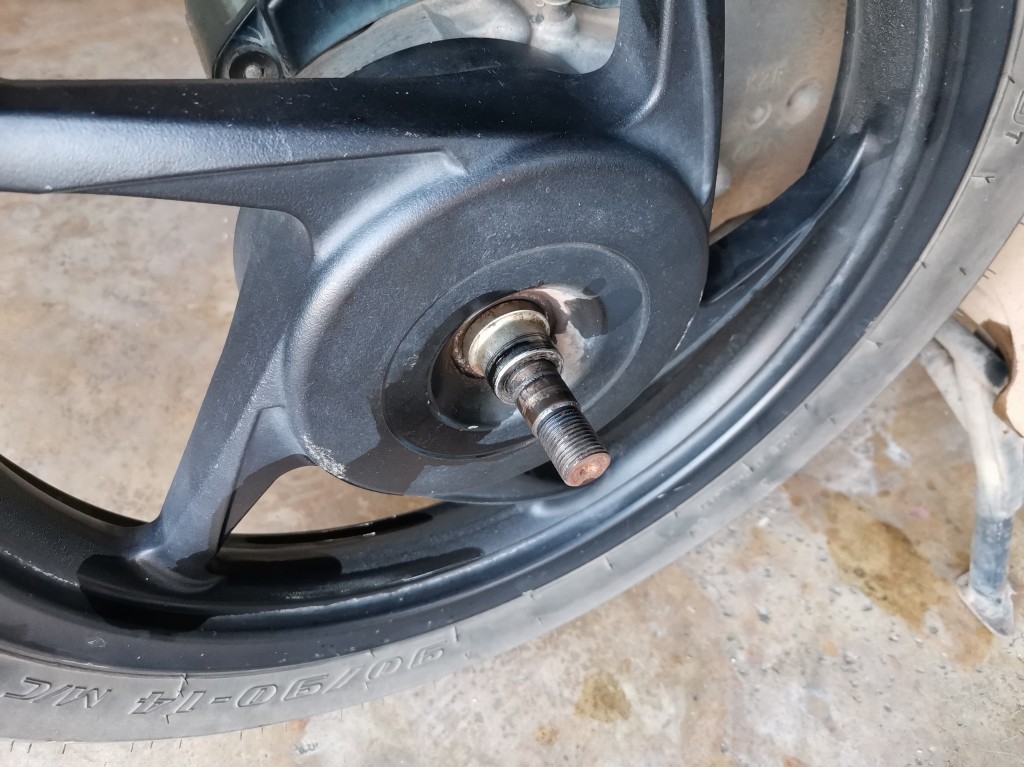 この辺はPCXでもよく有る事象としてネットに情報あるので、シャフトを清掃&潤滑しブレーキを緩めホイール裏側から地道にハンマーリングして5分ほどで外れました。