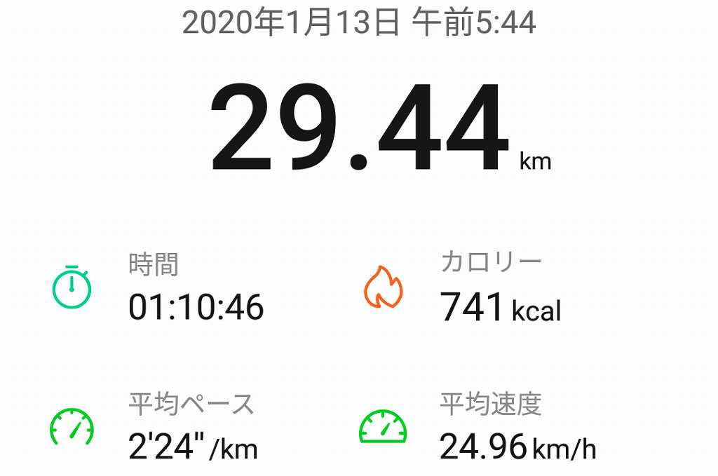 そんな感じで家に着いたら走行距離29.44km、平均速度24.96km/hと平凡な結果となりました。