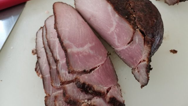 焦げ臭い自家製ハムも香りが落ち着いてきて、悪くない感じになった。