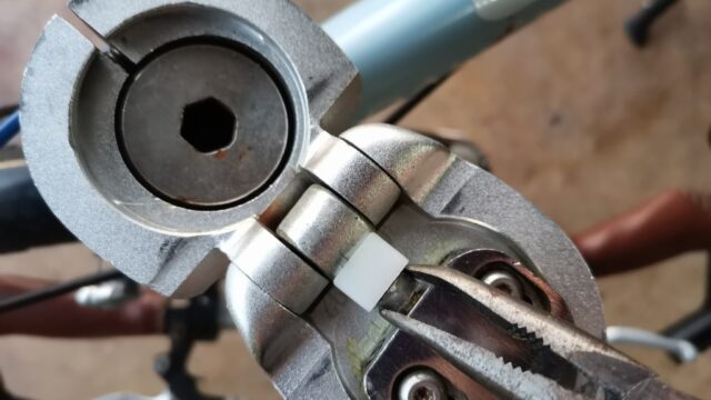 折り畳んだ自転車を組み立て中にハンドルポストのロックが緩くなっていて調整。