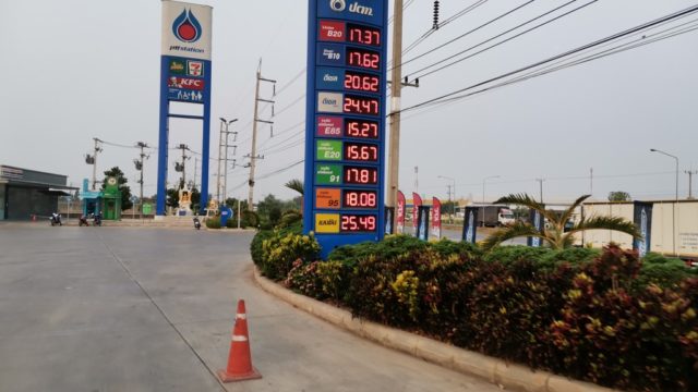 昨日まではガソホール91で17.81バーツだったと思いますが、リッター17.38バーツになります。