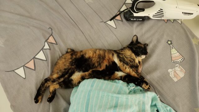 自転車と同じくらいの頻度で書いている猫の皮下点滴のお時間です。