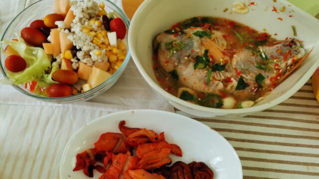 嫁氏用の「プラーヌンマナオ」だけれど、美味しいけど辛いらしく次の日の嫁氏はお尻が熱いトンシアになる。