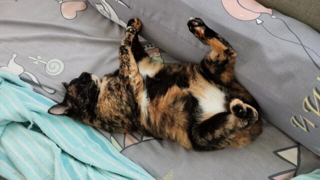 部屋の掃除でリビングのマットレスを足で押して移動させても、家主たるプルさんは驚く事もなく爆睡。昔は掃除機の音にビビっていたのに立派になられたねぇ。