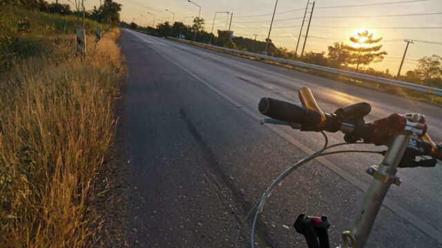 今日は朝5時半に起きて朝チャリ。もう朝5時半でも朝日が出ていて日に焼けちゃうね。