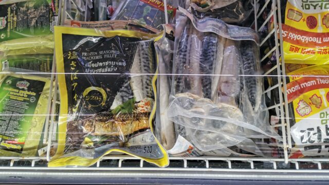 最近の我が家の食卓でよく出てくる「塩サバ」マジで日本の味で旨い。黄色と黒のパッケージの方は3切れ入りで透明は4切れです。身の大きさが違うみたい。我が家は4切れを買ってる。1パッケージ139バーツ(約520円)だったかな?1切れ35バーツになるけど、これ1切れで2人分のメインのおかずになるので高くはない。