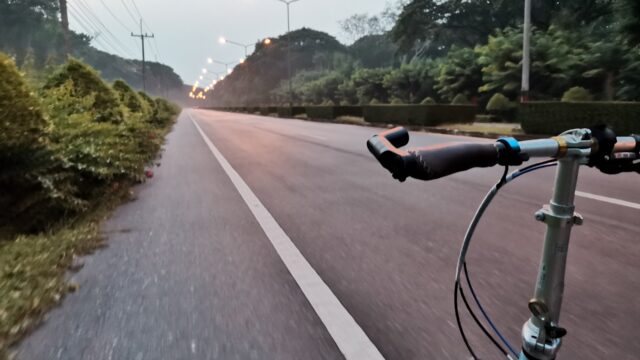 深夜の雨で大気が動いた効果か、朝の大気汚染がギリ不健康のAQI140に下がったので久しぶりの朝チャリに出かける。