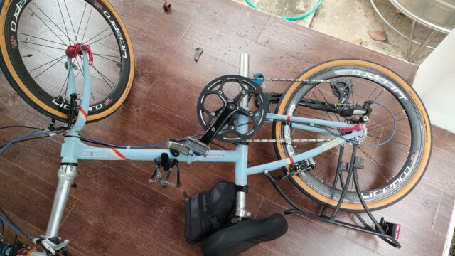 家に戻って自転車を水洗いした後に何気なく「最近この自転車折りたたんで無いなぁ」と思い久しぶりに折りたたんでみる。
