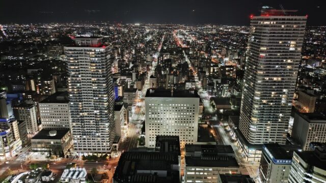ゆっくり椅子に座り四方の夜景を順番に堪能できて良かった。本当に札幌の道は真っすぐですごいねぇ。