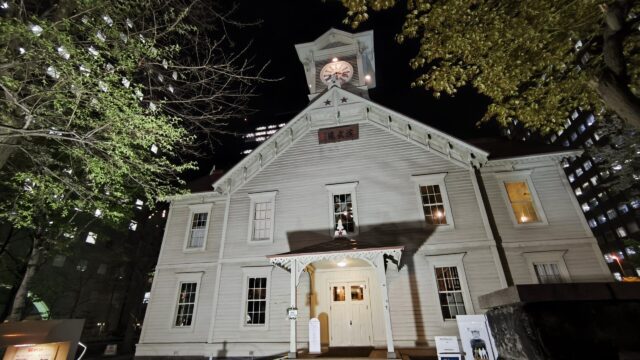 当時は「へ~これがかの有名な札幌時計台なんだ」と皆で記念写真を撮りましたが、ライトアップされた姿はそれなりに綺麗だよね。