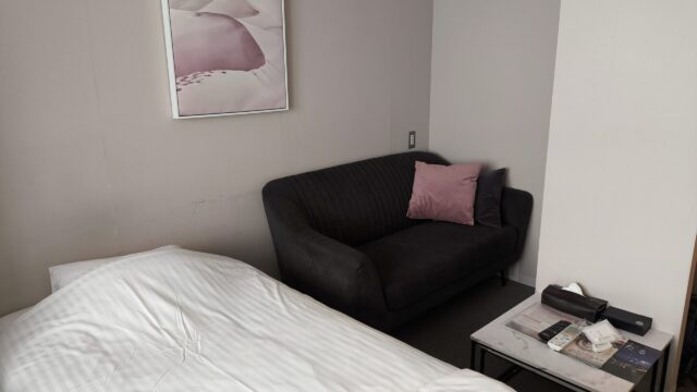 ソファーの半分は壁に向いた感じで、ホテル側もどのL/Oが良いのか苦悩している感じが出てる。おそらく各部屋でL/Oが違うのだろう。