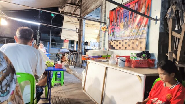 お店は土曜日ナイトマーケット通り交差点にあるオープンエアなお店であまりキレイではない。