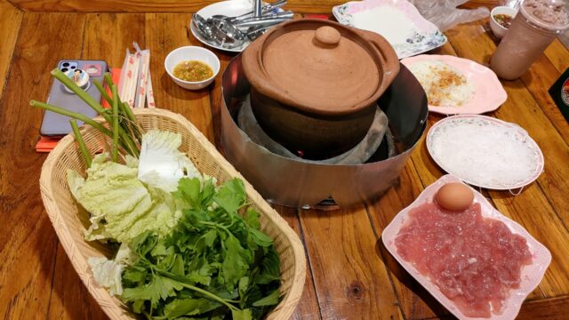 んで、寒い季節は鍋でしょう!って事で、晩御飯はチムチュム(イサーン式鍋)を食べに行きました。