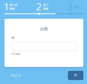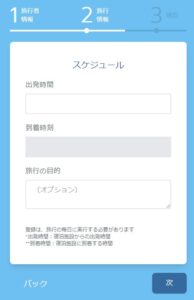 記載は英語で、目的地や到着時間等はプルダウンメニューの選択式なので難しくはない。