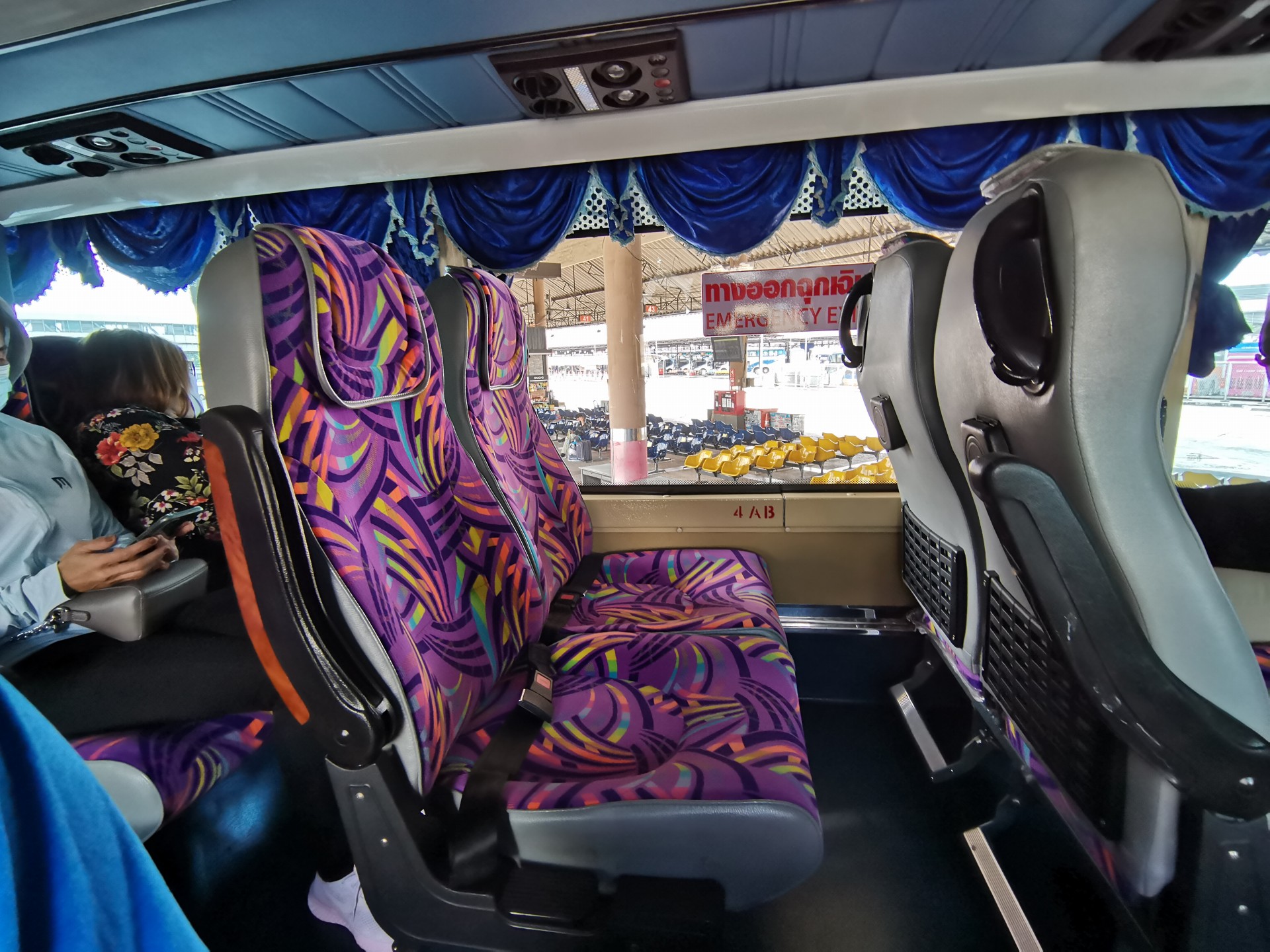 バスのシートは適度な広さで居心地は悪くない。しかしタイのバスあるあるでエアコンが極寒モードなので厚着の用意をして乗ってください。