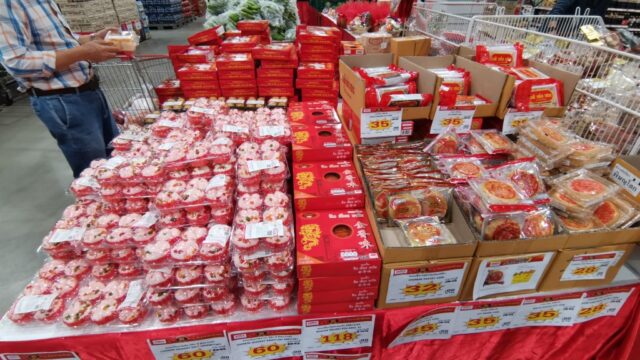 店内は2月12日のチャイニーズニューイヤー用品が大量に売られていて赤いパッケージだらけ。