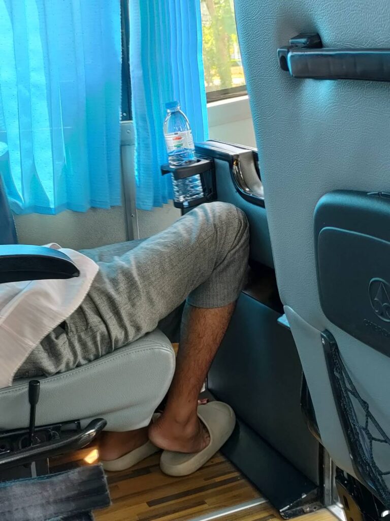バスの車内は片側1列、片側2列のシートレイアウトで、ピサヌロークのバス会社の両側2列よりシートが大きくて快適。