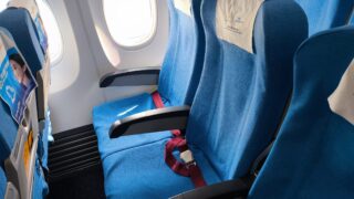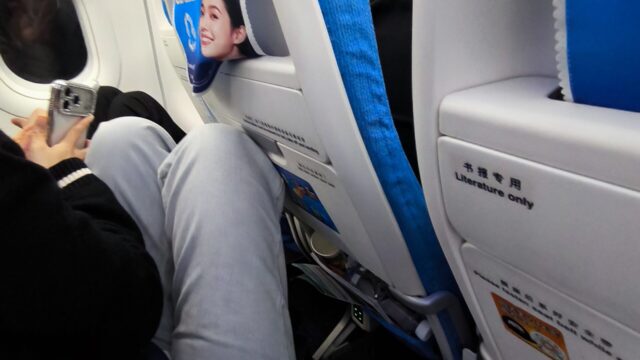 そしてエコノミークラスの座席ですが、リクライニング機能が廃止されているみたいで、リクライニングさせるボタンが無いです。