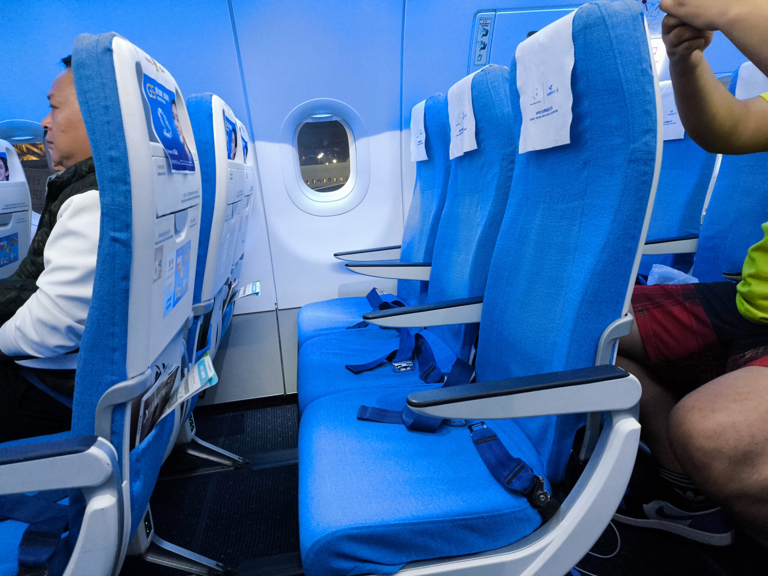 一部の座席にはリクライニングボタンが残っていたので、全席かは不明ですが搭乗中のリクライニングは無しと思っていた方が良さそう。