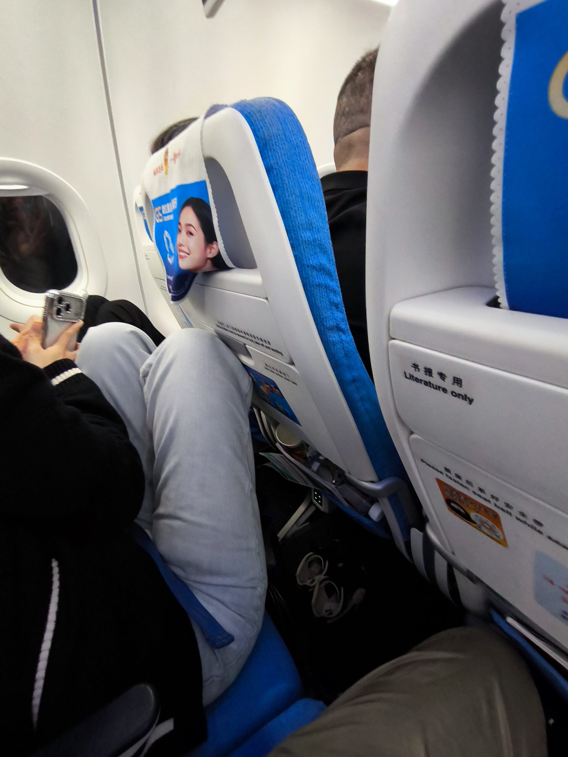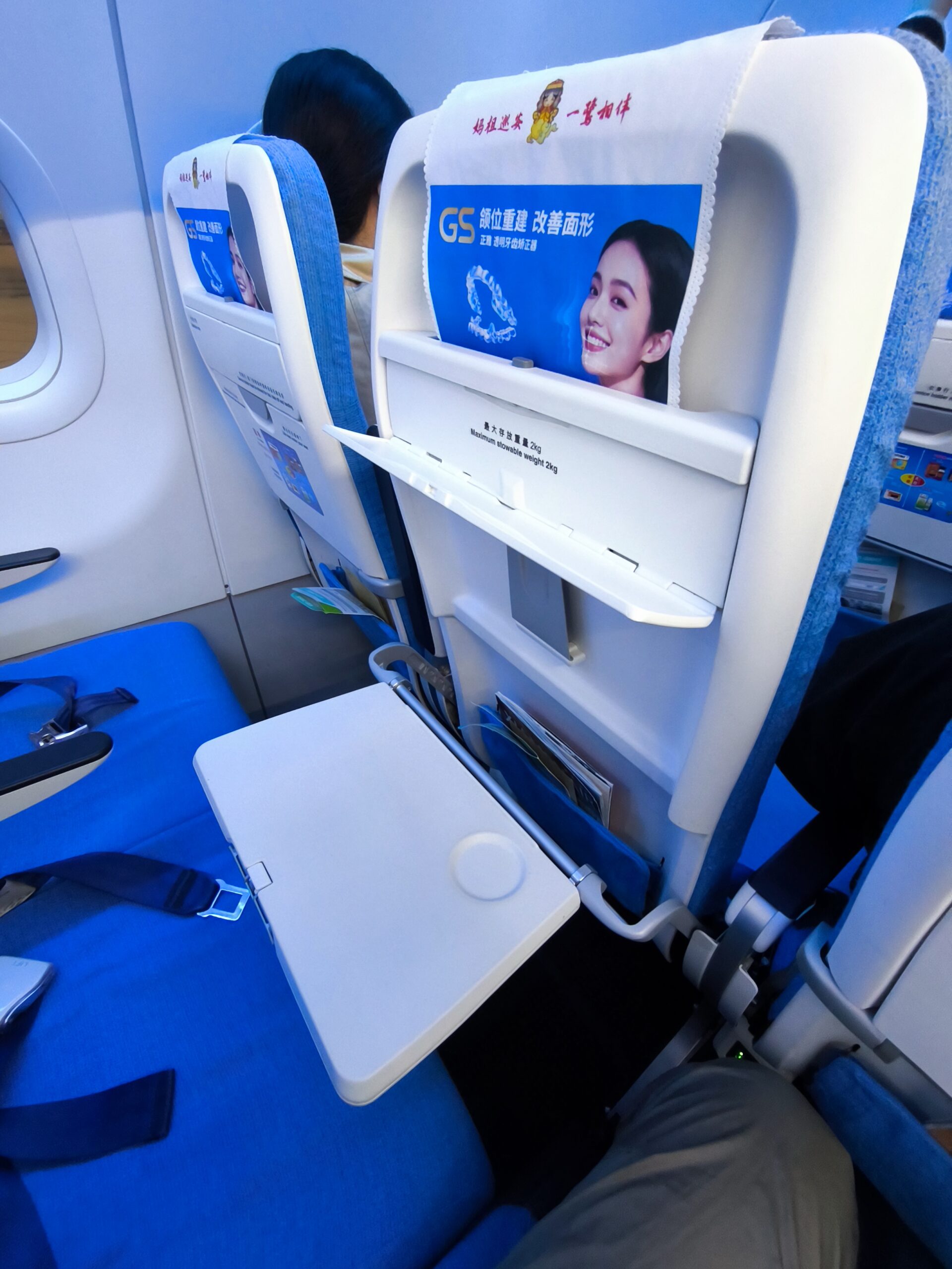 で、バンコク行きのMF843便のエコノミークラスですが、シートに関しては少し新しい感じでUSB充電端子もあるので飛行中にスマホの充電が可能でした。