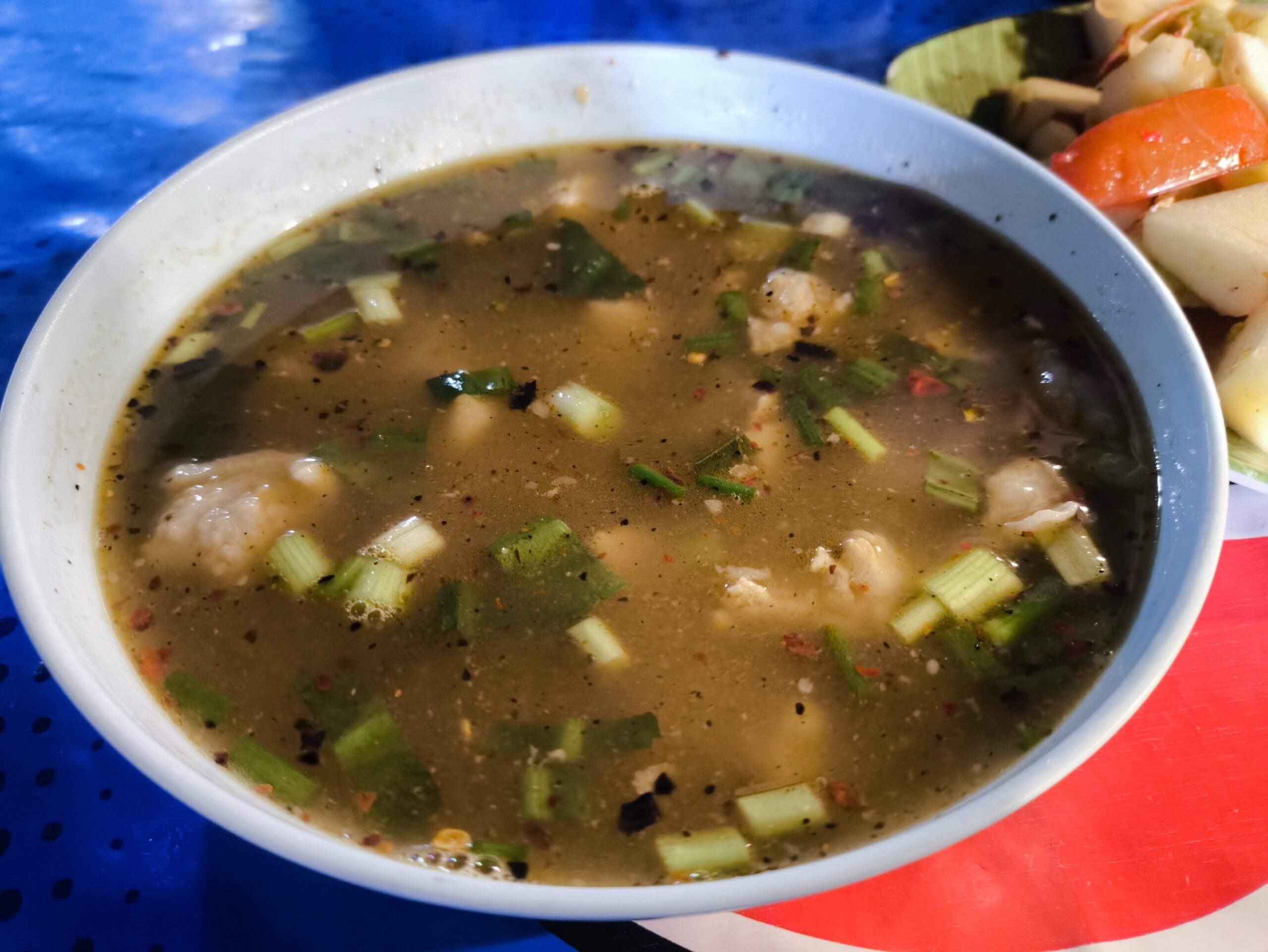 トムサップは少し塩辛いけど適度な辛さで旨し、豚の軟骨肉が一杯入っていて良き。
