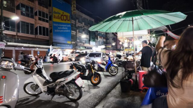 衛生的ではないけど、路上の屋台で食べるのはタイらしくて良いね。