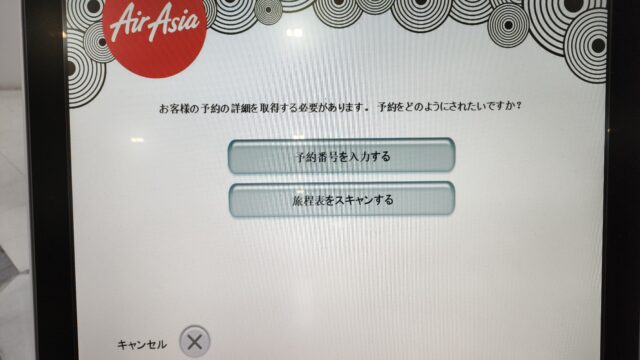 セルフチェックイン機は5台くらいあったかな?撮影日はAirASIAの最終便しかないので表示がエアアジアですが、どの会社でも使える模様。