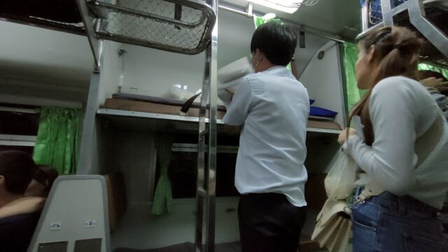 自分も寝台列車に乗るのは初めてでしたが価格の分だけバスより快適でした。