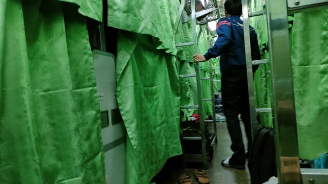 自分も寝台列車に乗るのは初めてでしたが価格の分だけバスより快適でした。