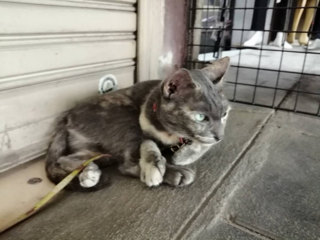 お外には猫カフェの従業員候補?猫ちゃんが採用試験待ちで座ってます。