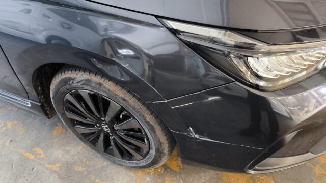 工場はかなり広くて多くの車が修理されてた。塗装ブースとかあるのか不明だけれど、修理自体はFrフェンダーの凹み補修&塗装とバンパー塗装くらいだし難しくはないね。