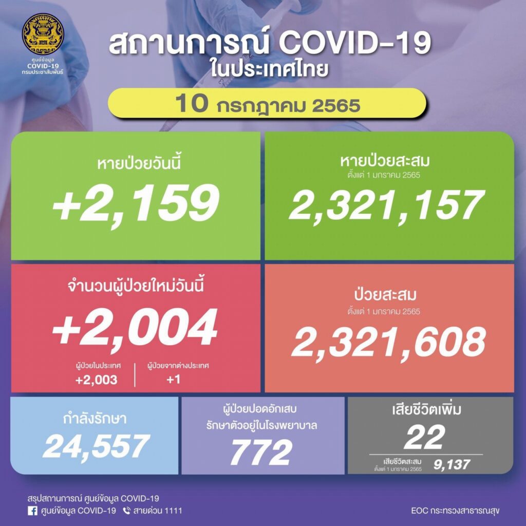タイの新型コロナ新規感染者は2004人、死者22人です。ピサヌロークは発見できず。