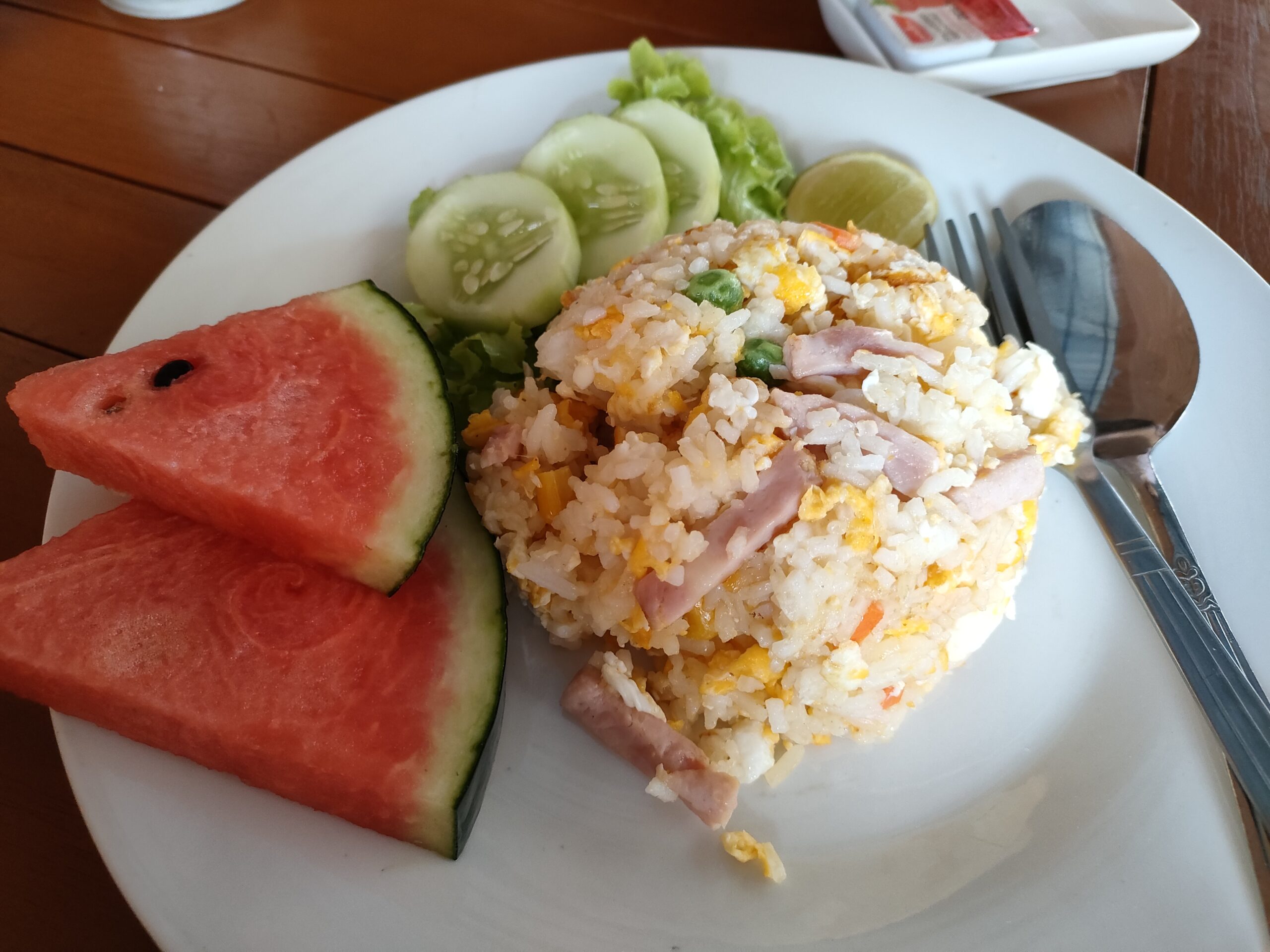 もう一つはカオパット・ハムにした。まあタイ料理なので味は安定してる。