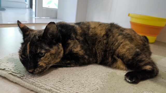 家に戻って荷物を片付けた後に我が家のサビ猫プルさんとスキンシップ。