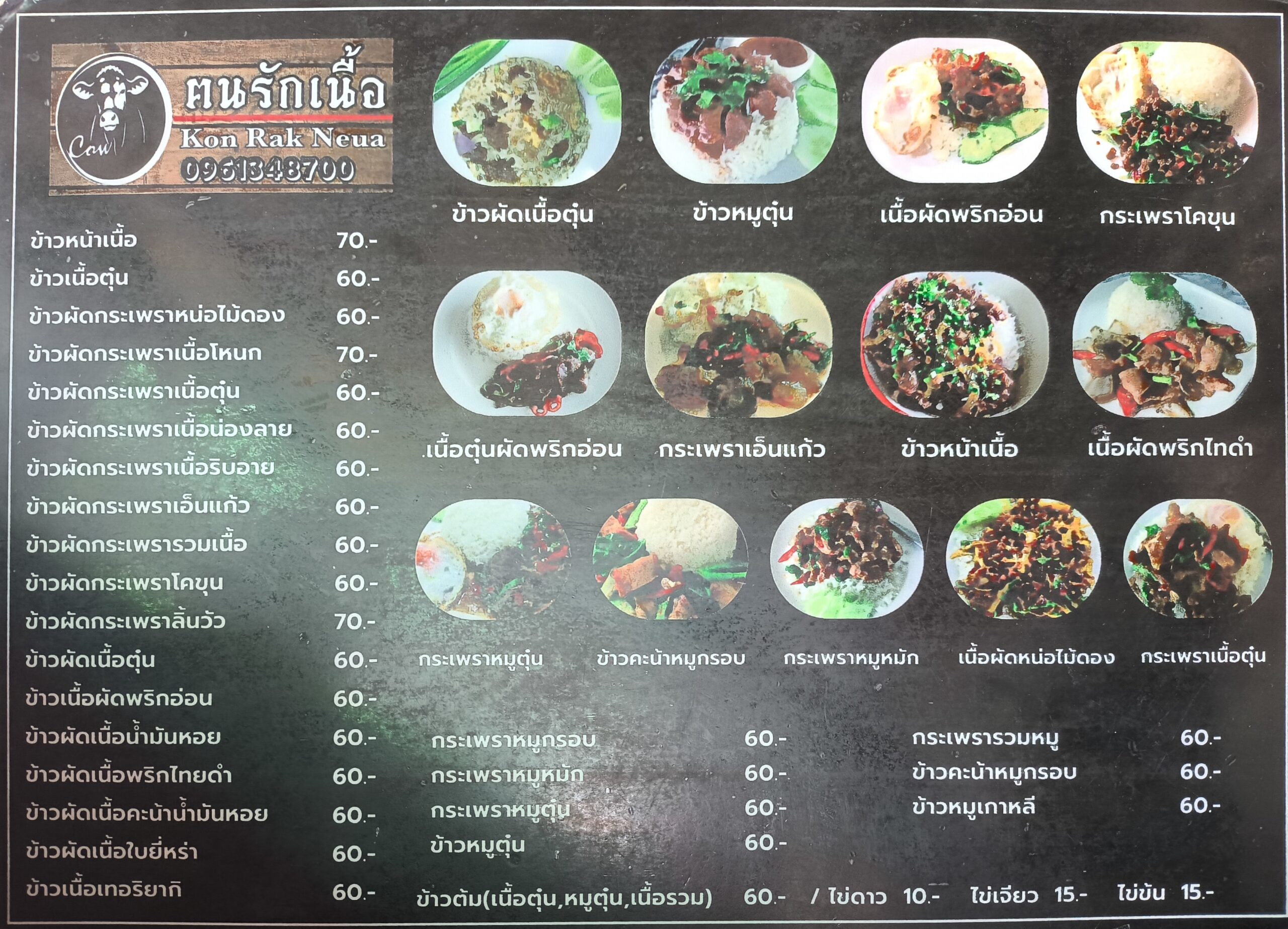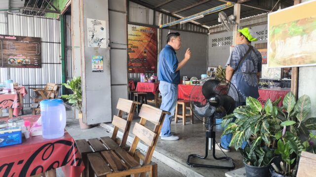家に着く1時間くらい前に遅めの昼食。牛肉メニューが美味しいらしい「ร้านฅนรักเนื้อ お肉大好きの店?」です。