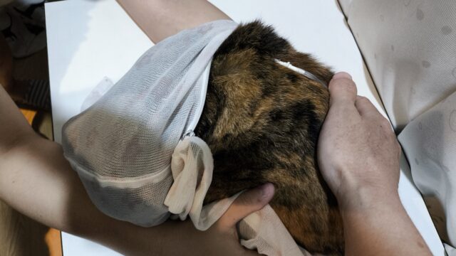 最初は嫁氏が注射担当でトライしたけど、嫁氏は猫が動いた時に自分の指に注射針を刺すトラブルで失敗。