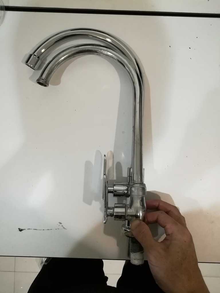 元の水栓より少し長くて曲げが緩やかなのでシンクから水が飛び出さないか心配ですが、取り付けてみないと分からない項目なので、とりあえず購入しまいた。