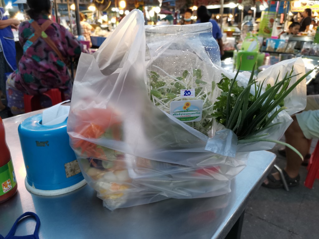 嫁氏はお目当てのサラダ屋さんで120バーツ分ものサラダを購入し、野菜を食い溜めする作戦みたい。