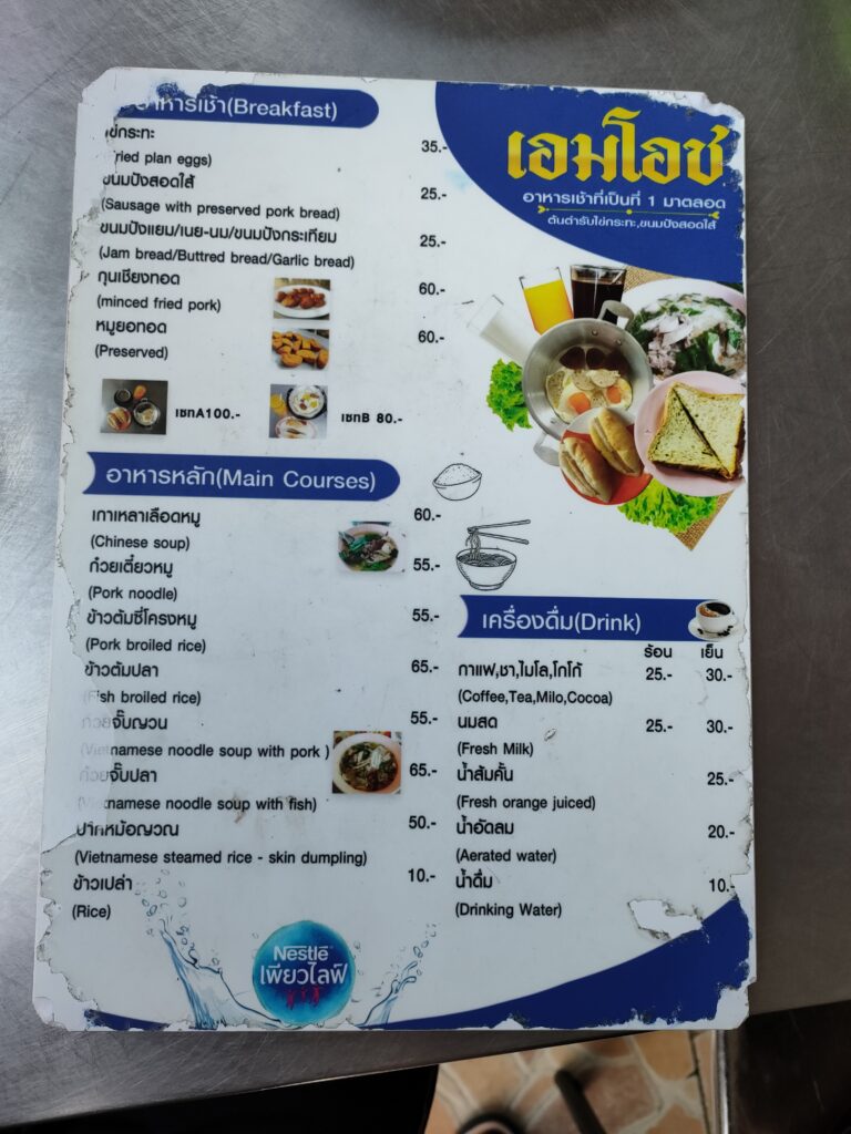 詳細な価格とか聞いてないけど、バンコクとかのお高いお店よりは安く、その分美味しくないとの事でした。つまり価格相応って事ですね。