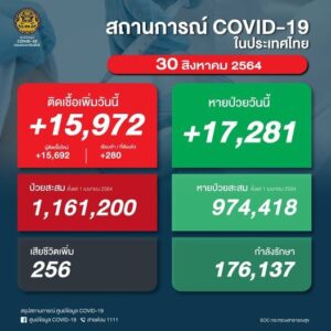 あとタイの新型コロナ新規感染者は15972人、死者256人。ピサヌロークは新規22人でした。まだ入院者が778人居るので医療関係者は大変だと思います。