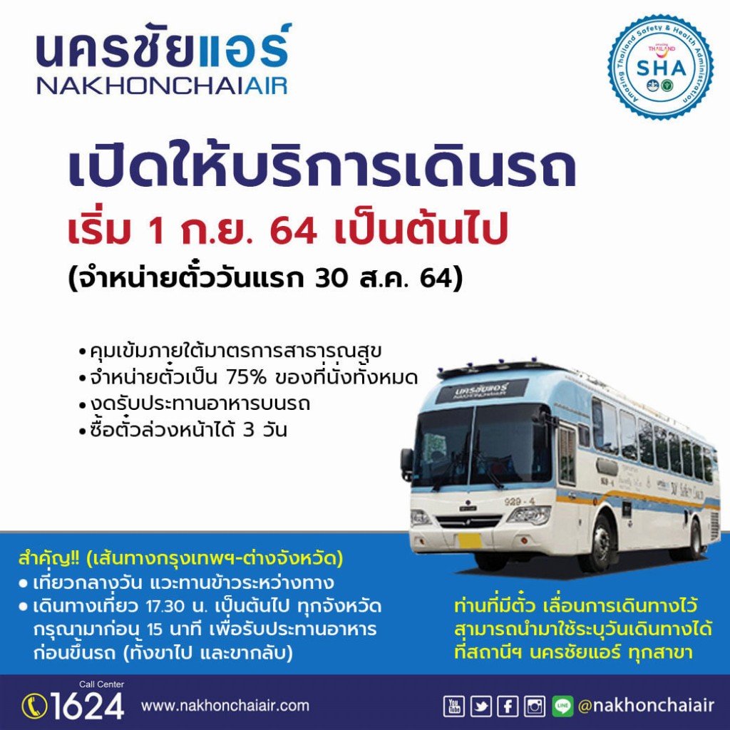 常連客の皆様、ナコンチャイエアはバスサービスが2021年9月1日からオープンすることを発表しました(初日チケット販売64年8月30日)