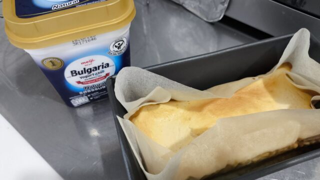 半額の明治ブルガリアヨーグルト42.5バーツをもう1セット購入してそれでヨーグルトケーキ作った方が安くてたくさん食べれるじゃん。