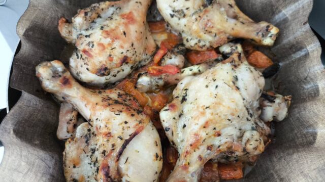 オーブンは220~250℃で25分目安で様子見。お肉は出来るだけ常温に戻してから焼いてる。