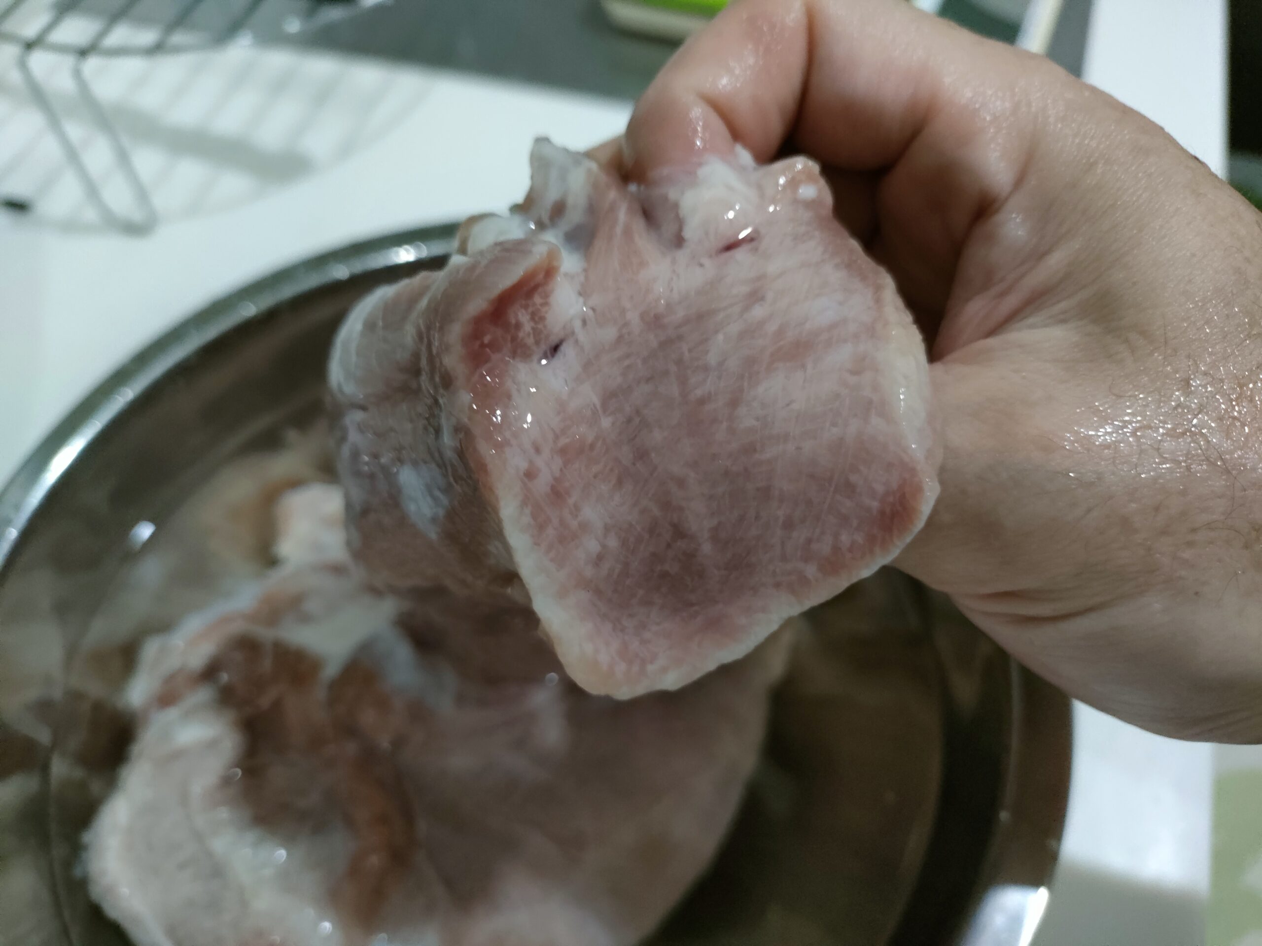 でもこの後包丁でタン下(スジ肉部分)を切ったら内部は血が残った状態で再度も揉み洗いをした。