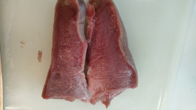 表面を見た感じは綺麗なお肉色で下処理上手に出来たなぁと自己満足。