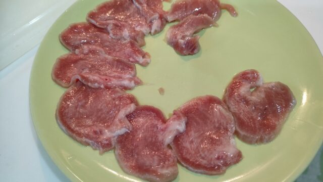 見た目は下処理出来ていて美味しそうに見えるよね。タン元で焼肉屋さんの3人前位の薄切りを作り冷凍保存しました。