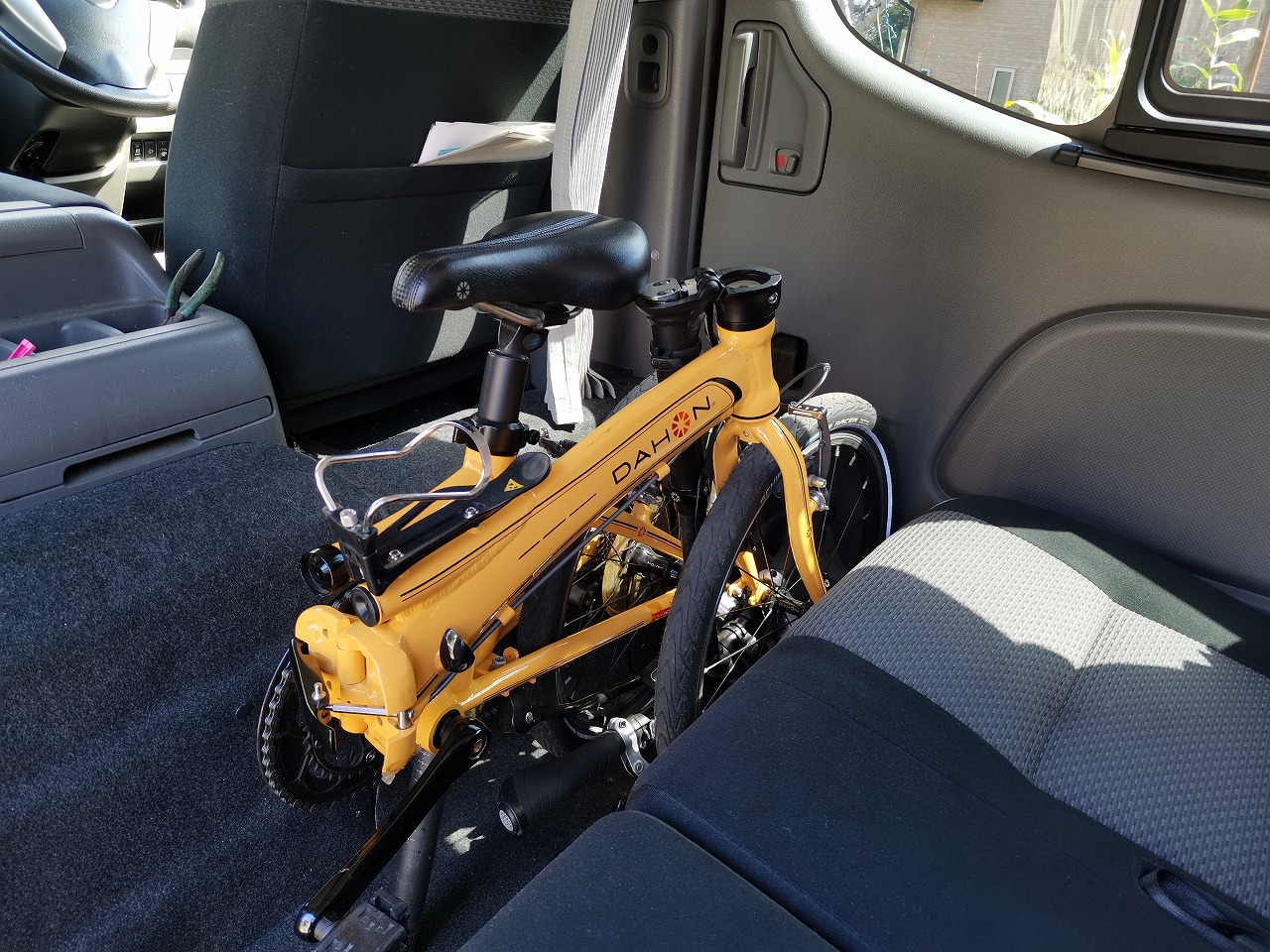 実父が花火を見にに行くというので、嫁氏と一緒に車に同乗する。駐車場と花火会場の移動や買い物に便利かと思い折り畳み自転車も載せた。
