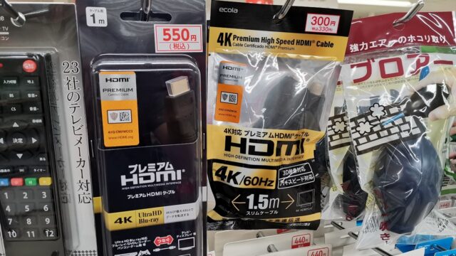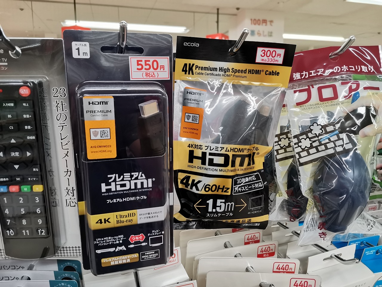 購入した中古ノートPCの液晶画面が13.3インチなので、拡張モニターを使うためにHDMIケーブルを購入。家電量販店より100円ショップの方が圧倒的に安い。