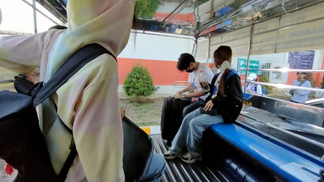 途中下車するであろう女子学生が座っているシートの隣に座り、パタヤ駅までのローカル列車を楽しむよ。