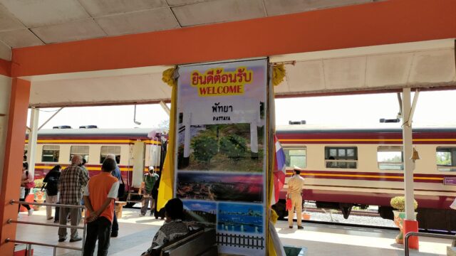 我が家が乗る予定の列車は7:40出発のパタヤ駅到着10:34予定。